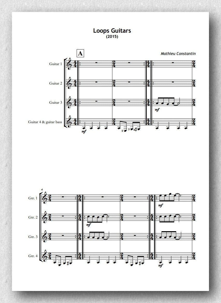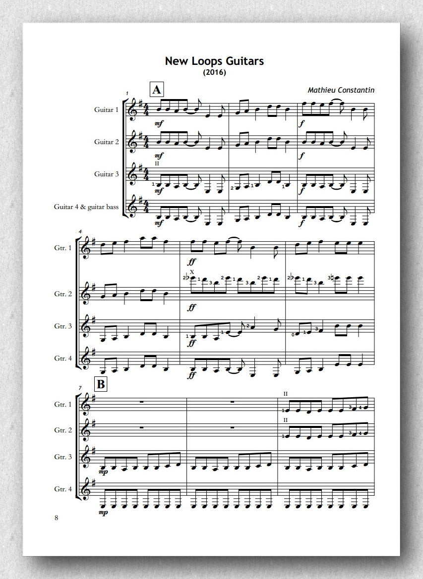 For guitar ensemble or guitar quartet. Two pieces in rock-style.