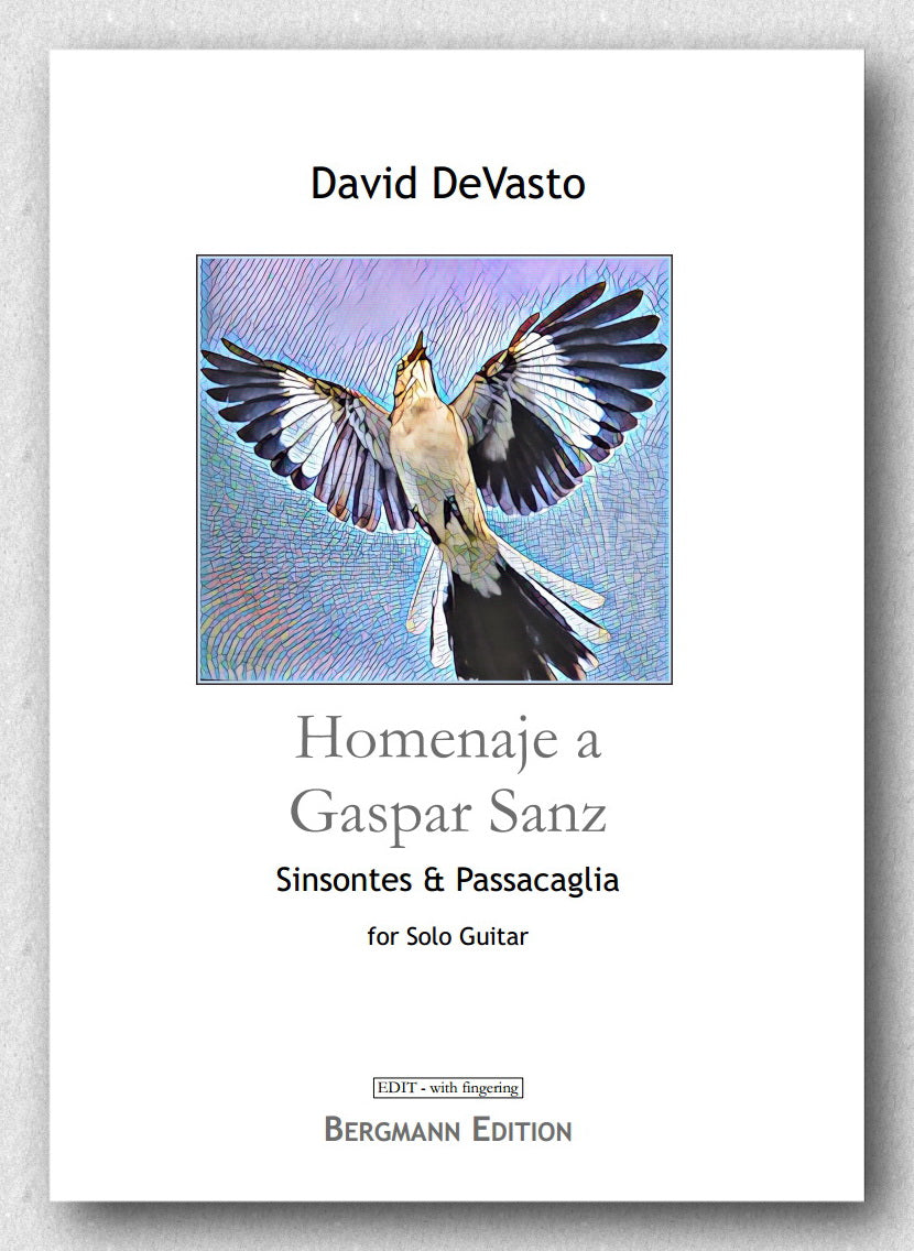 These two short pieces represent an homage to Gaspar Sanz, the great pioneer of the Baroque guitar. Sanz's Instrucción de música sobre la Guitarra Espanola represents both a pedagogical method of learning guitar technique, as well as a voluminous collection of solo guitar masterworks. Among this extensive collection are two pieces, Canarios and Passacalles, to which these present works are in homage. The first piece, Sinsontes. (Mockingbird) is a playful response to Sanz's Canarios (Canaries). The theme is recognizable but heavily transformed melodically (fragmentation & sequence), harmonically (substitution & expansion), and rhythmically (asymmetrical meter). The second piece, Passacaglia, like Sanz's Passacalles, is a theme and variations in triple meter based on a recurring bass line. The bass line in this case, is taken from a common "stock" bass from the Baroque period utilizing descending chromatic motion. My goal with the Passacaglia was to make each variation unique while remaining faithful to both the Baroque style and stylistic idioms of the guitar.