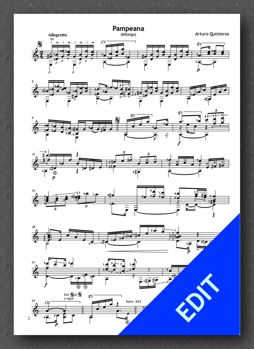An Argentine Milonga. In 2014, Pampeana was chosen as an obligatory piece in the "international guitar competitions Santa Maria de Los Buenos Aires". Watch maestro Alberto Morelli play Pampeana at https://www.youtube.com/watch?v=uO88tHesXYg