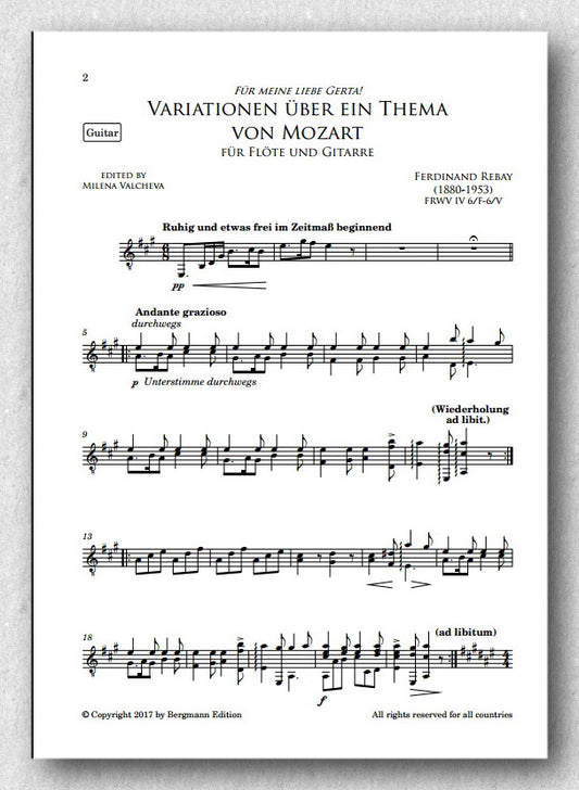 Rebay, Klavier No. 14, Variationen über ein Thema von Mozart für Flöte und Gitarre