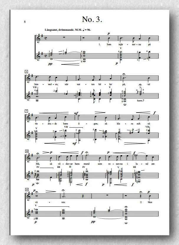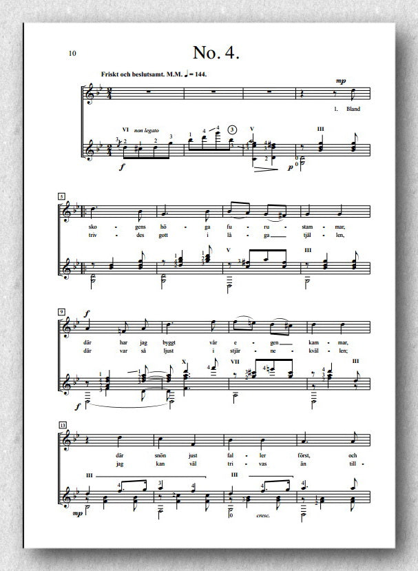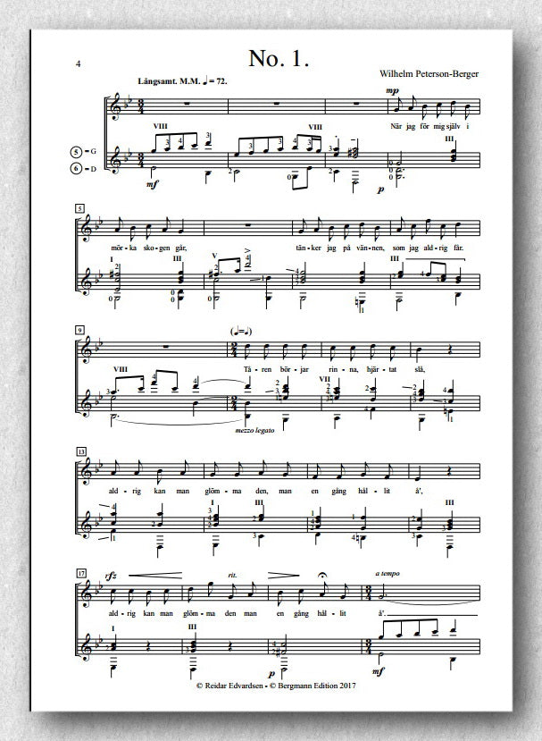 Four songs in Swedish folk style by Wilhelm Peterson-Berger (1867-1942). Original for piano and voice - arranged for guitar and voice by Reidar Edvardsen.