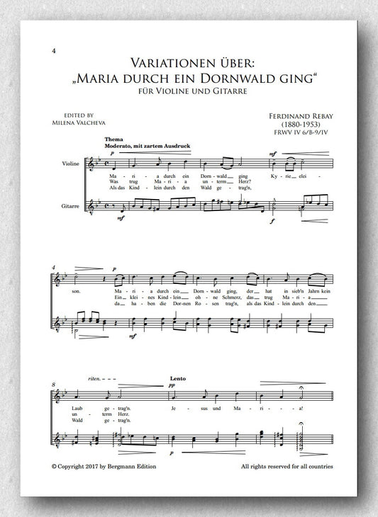 Rebay [062], Variationen über das alte Weihnachtslied: "Es ist ein Ros' entsprungen"